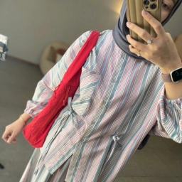 PROUDYHIJAB - Yuri Set Setelan Atasan Rok Motif Salur Salur Variasi Tali Samping Setelan Wanita Busui Friendly Full Kancing Depan